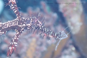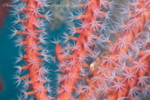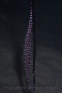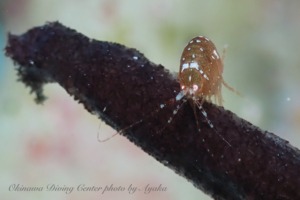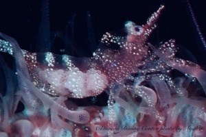 口から2本手?がでてます。よーく見るとハサミなのでエビですね!