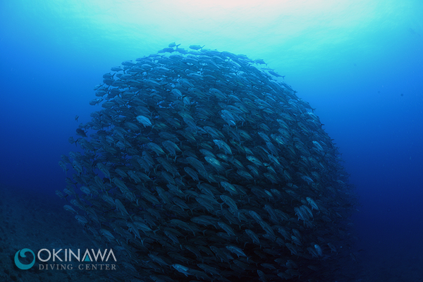粟国島の代名詞ともいえるギンガメアジのトルネードは上の写真の通り。ただ最初はなかなか現れず、