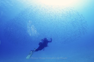 アジ玉!この数いるとやっぱり圧巻!ダイバーも一緒にナイスな1枚!!